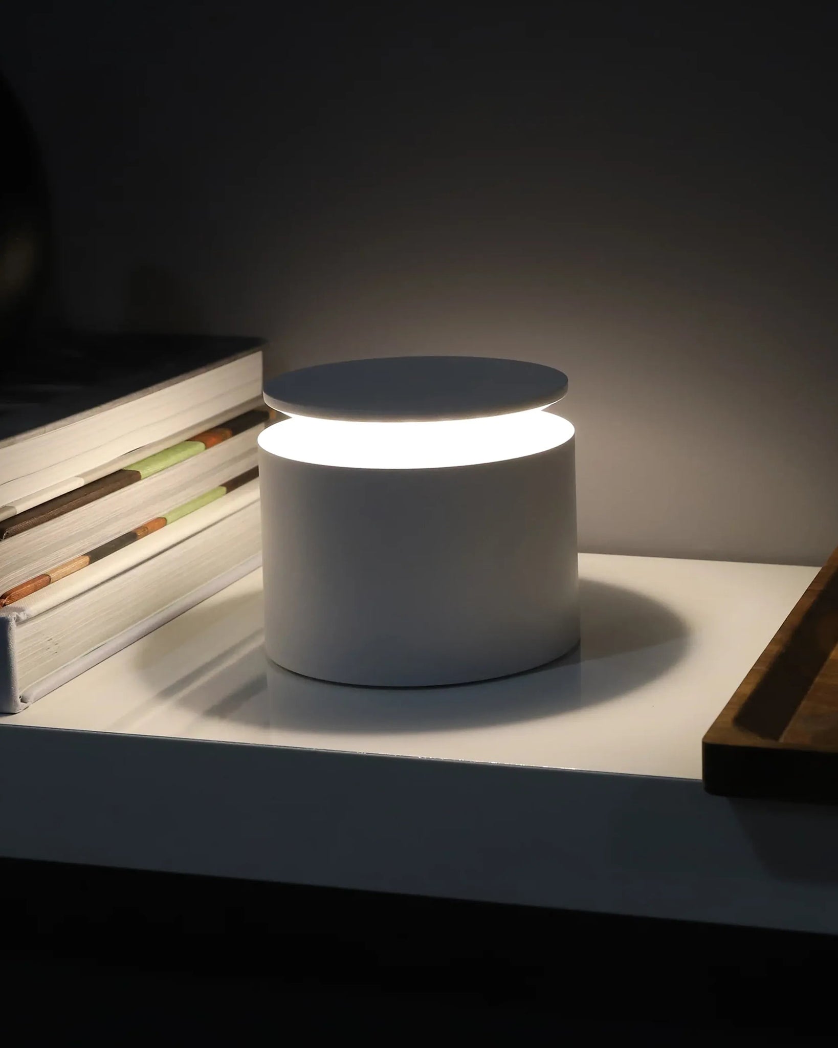 Push-Up Pro di Zafferano è una lampada da tavolo a LED ricaricabile, dal design compatto e funzionale. Si accende con una semplice pressione sulla parte superiore e consente di regolare l’intensità luminosa con controllo touch. Realizzata in alluminio verniciato, è leggera, portatile e resistente all’uso quotidiano. Grazie al grado di protezione IP54, è adatta anche ad ambienti esterni come terrazze e giardini. La base magnetica consente una ricarica pratica e veloce, mentre la batteria garantisce fino a 12 ore di autonomia. Disponibile in diverse finiture, è l’espressione perfetta dello stile e dell’innovazione italiana.