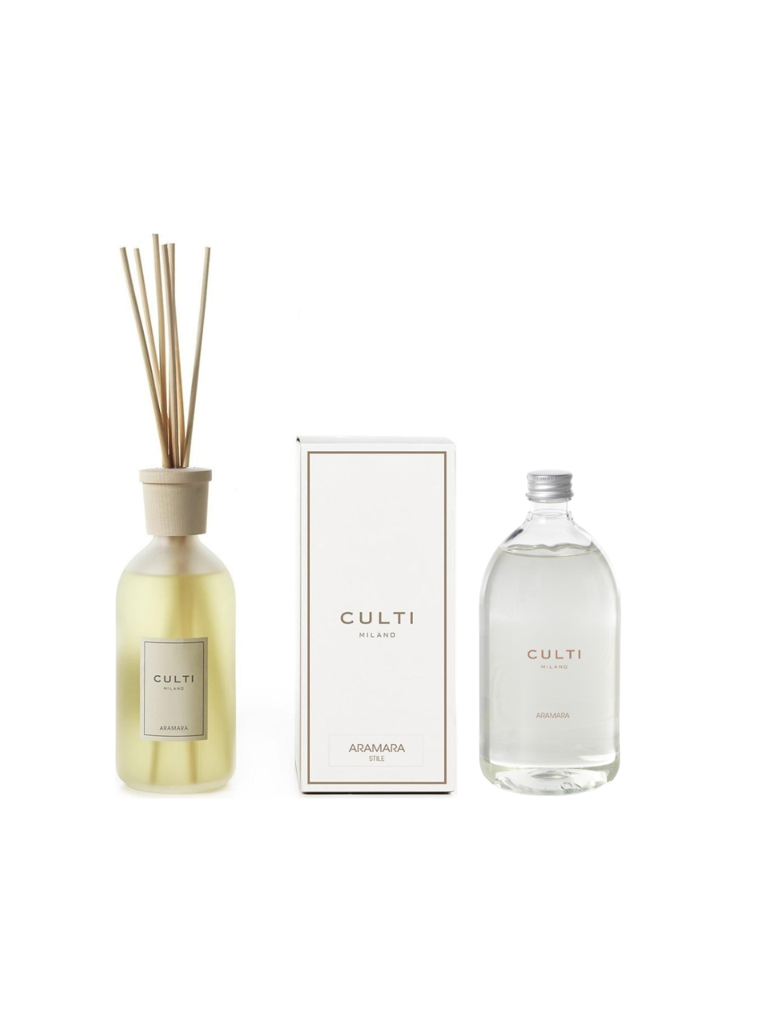 Scopri l’eleganza del bundle Culti Milano: il diffusore Stile da 500 ml abbinato alla ricarica da 1000 ml ti garantisce mesi di profumazione raffinata e continua.