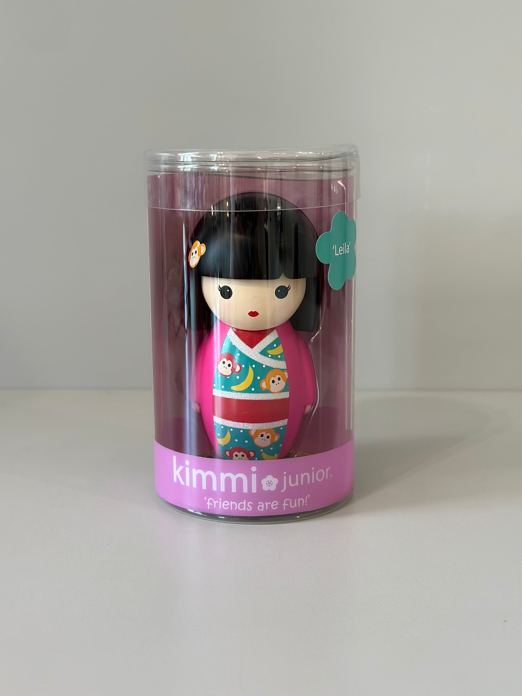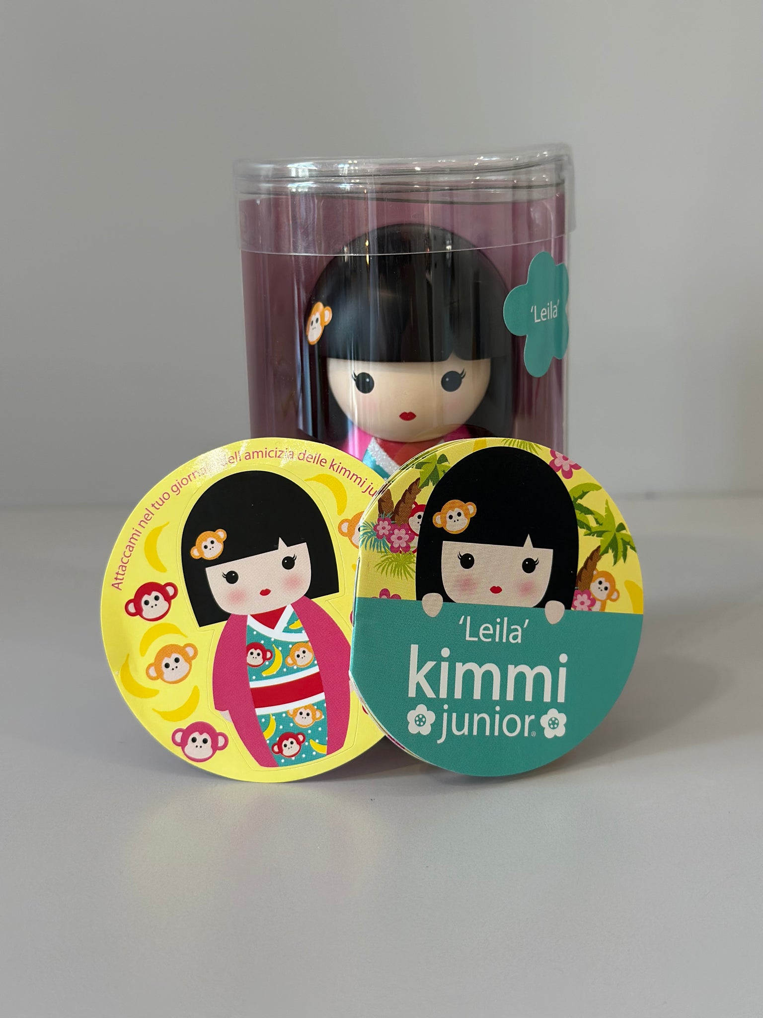 La Kimmi Junior “Leila” è una bambola vivace e irresistibile, ispirata alle kokeshi giapponesi, che porta con sé un messaggio di gioia e spontaneità. Con il suo sorriso contagioso e lo stile colorato, “Leila” rappresenta lo spirito libero e l’amicizia sincera.