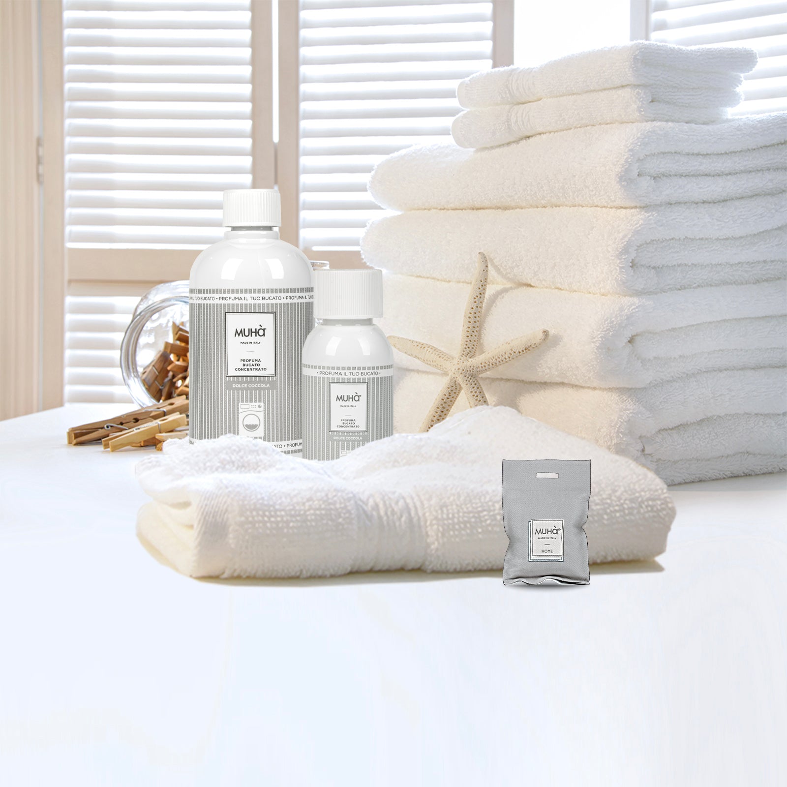 Profuma Bucato Dolce Coccola – Noce di cocco, arancia e vaniglia su fondo caramellato e legnoso per un effetto dolce e avvolgente | Muhà