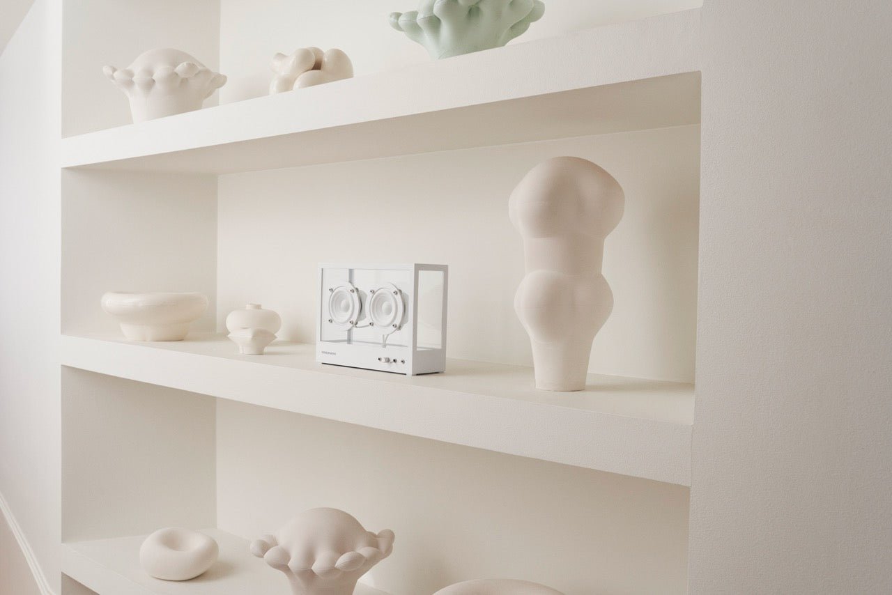 Small Transparent Speaker – Bianco | Design Minimal e Suono Hi-Fi
