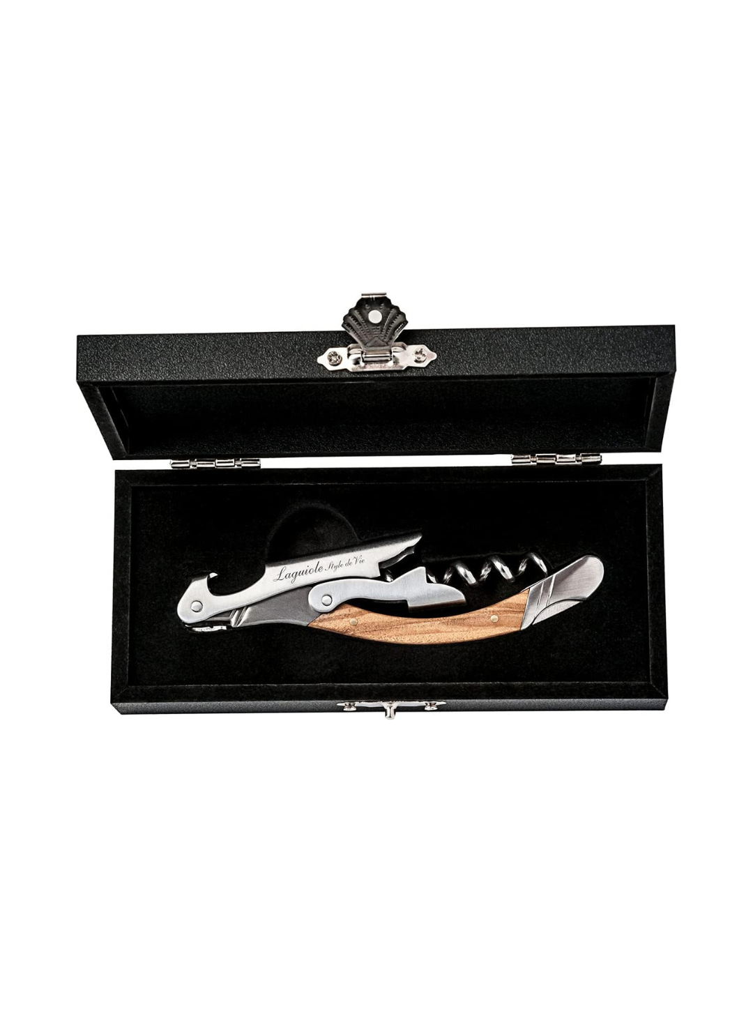 Il cavatappi sommelier Laguiole Style de Vie con manico in legno d’olivo è pensato per chi ama aprire il vino con eleganza e semplicità. Realizzato in acciaio inossidabile, garantisce un'apertura fluida grazie alla leva a due tempi e al tagliacapsule integrato.