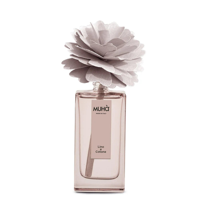 Il Diffusore Ambiente Peony Muhà Lino e Cotone è un profumatore d’arredo che unisce design elegante e fragranza avvolgente. Grazie alla sua essenza fresca e pulita, rilascia nell’aria una delicata profumazione di lino e cotone, che richiama la sensazione di bucato appena steso al sole. Il design con fiore in legno di betulla non è solo un diffusore, ma anche un elemento decorativo capace di impreziosire ogni ambiente della casa. Disponibile nei formati 50 ml e 100 ml, è ideale per spazi piccoli e medi, con una diffusione costante e naturale della fragranza. Perfetto per regalare un’atmosfera di freschezza, benessere e armonia, trasformando ogni stanza in un luogo accogliente e rilassante.