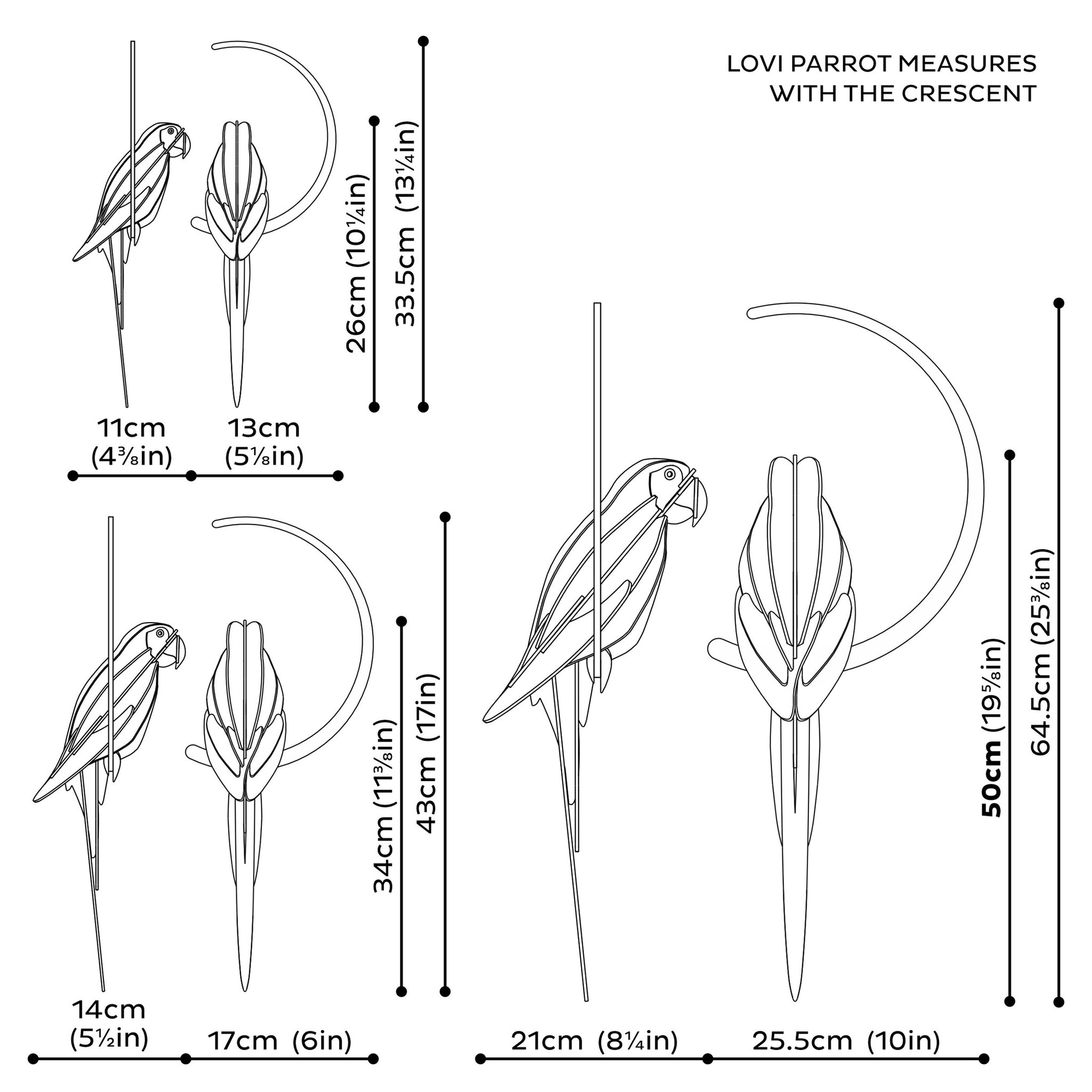•  Colore “Light Green” con dettagli realistici: ali blu, coda rossa, becco e piedi neri